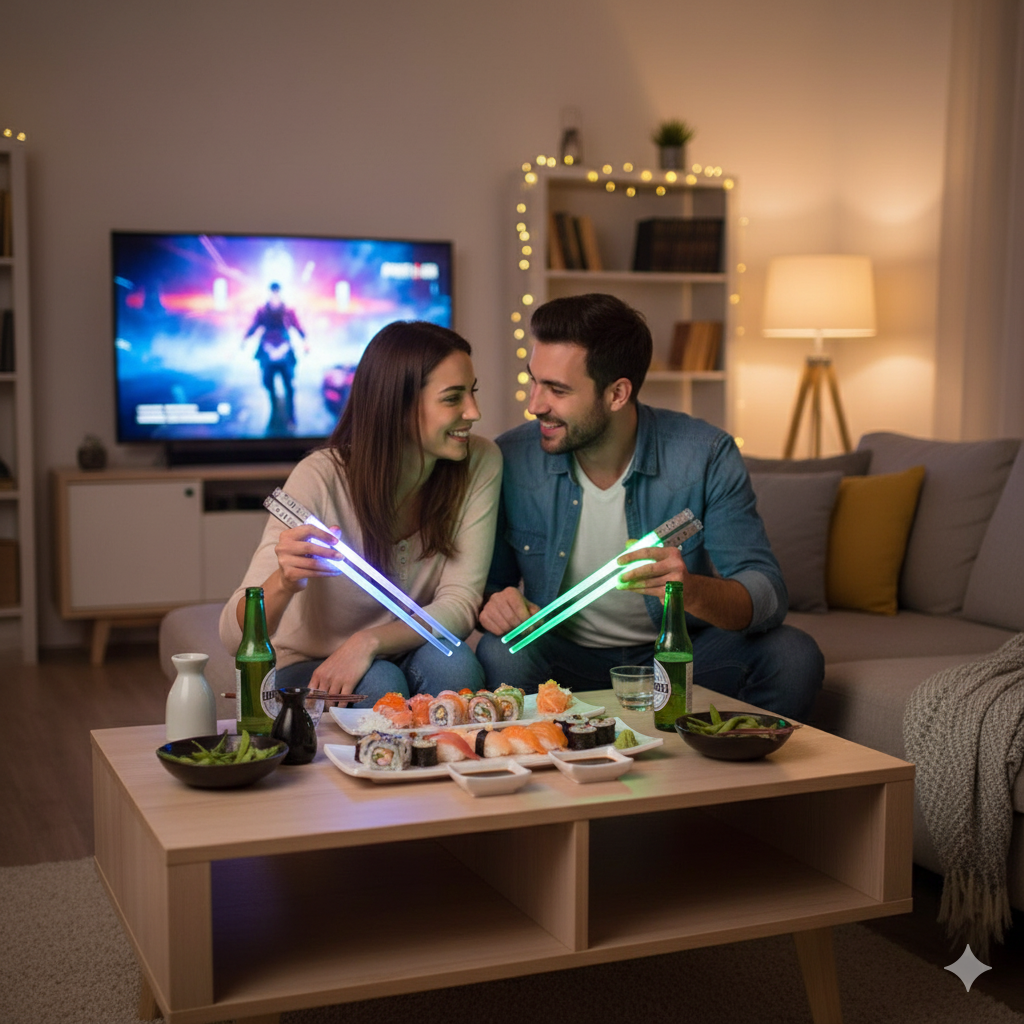 Iconic lightsaber design Inspired by the legendary blades from a galaxy far, far away, these chopsticks light up to emulate the look and feel of a lightsaber — matching mood, theme nights, or just your inner sci-fi fan.