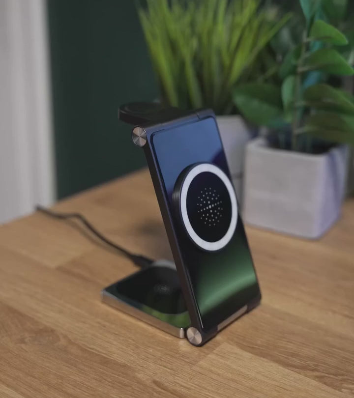 Foldable, travel-friendly design Fold it flat for portability, or prop it open into its charging mode. Ideal for home, travel, or office setups.